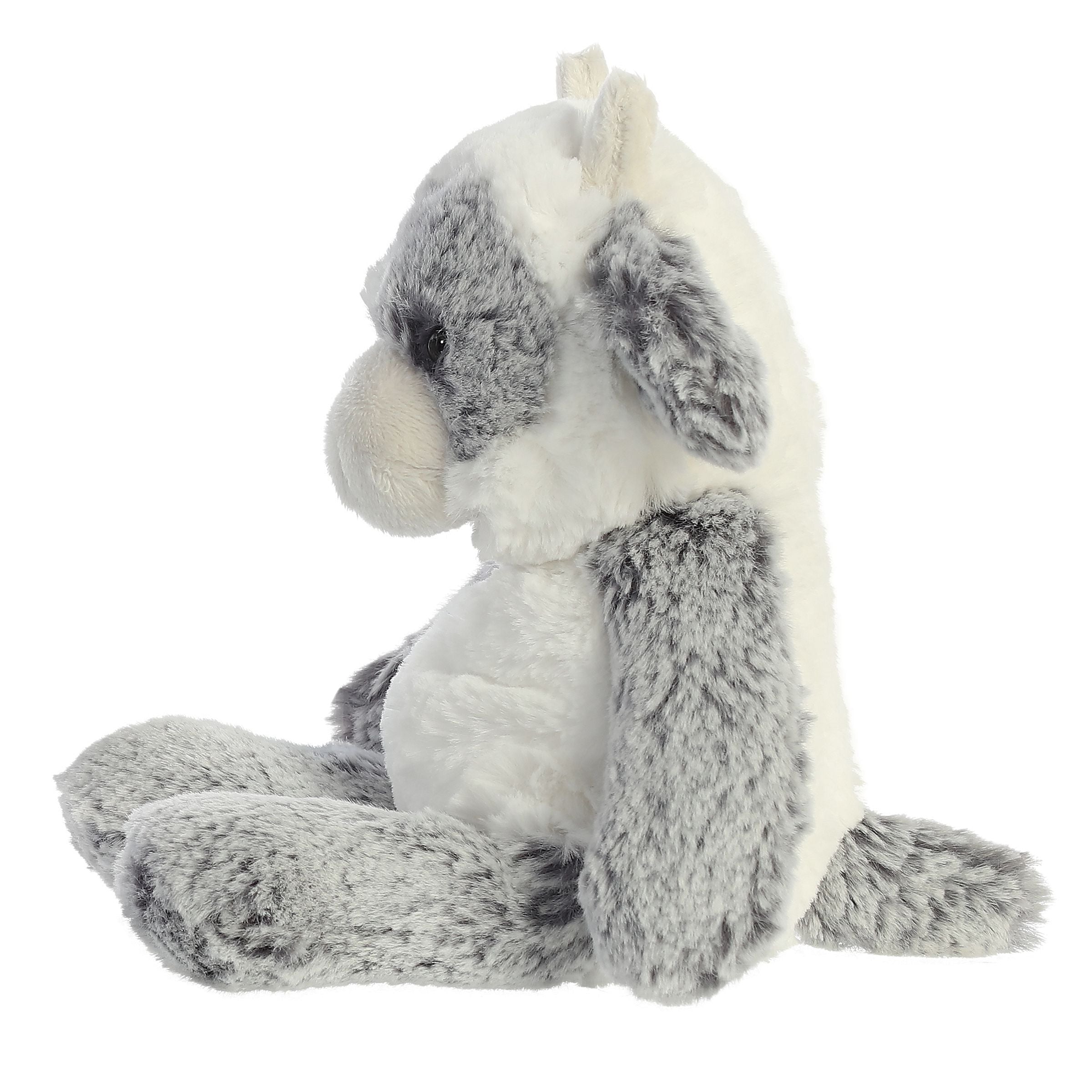 The Sweet & Softer collection features a silky feel that is both comforting and luxurious. This cow has a white head and body with two-toned fabric of white and grey on its arms, legs, ears, and spot on its face. Made of soft velvety fur, this plush is perfect for someone who wants big, lovable, and soft cuddles!