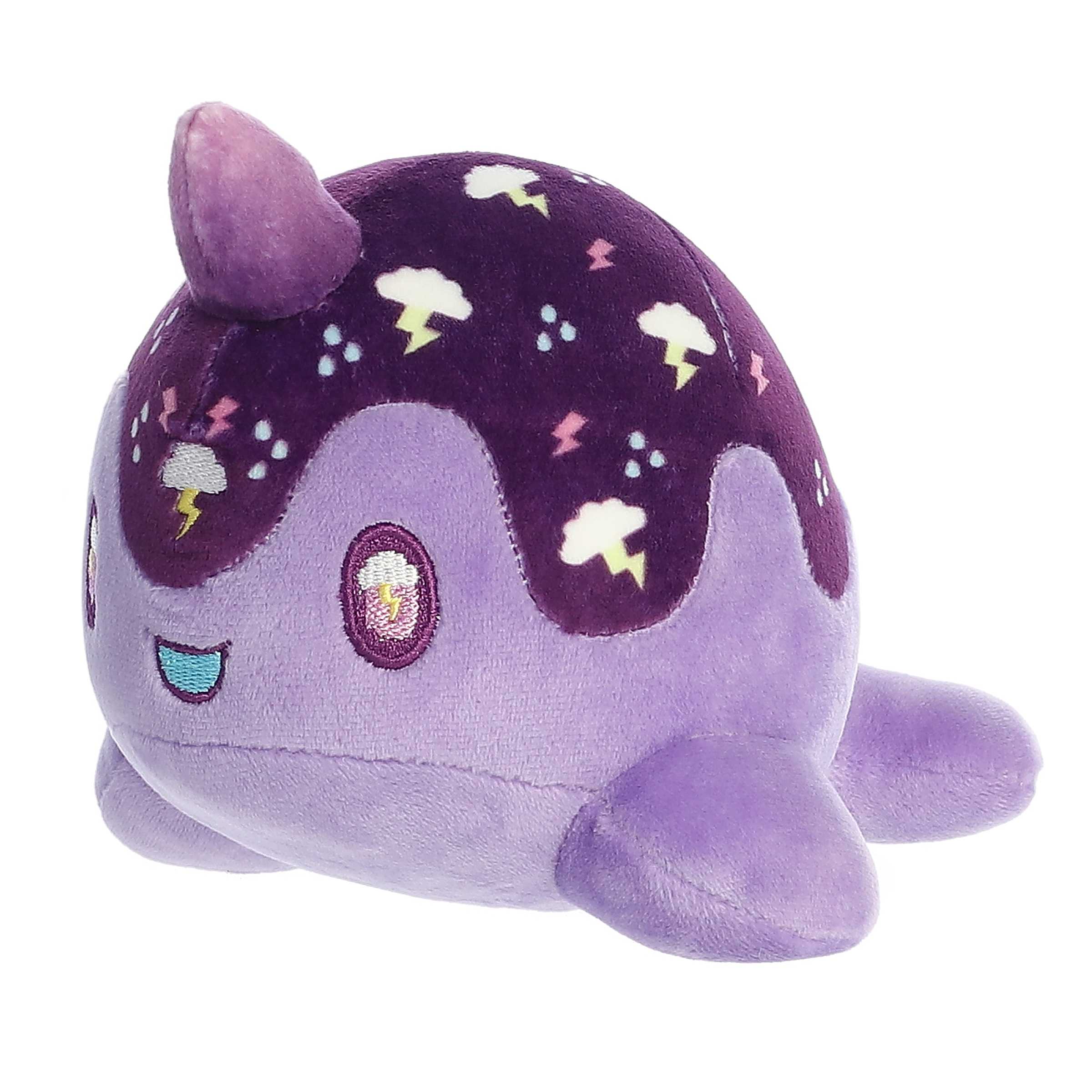 Presenting the Thunderstorm Nomwhal, a plush creation bringing together light and dark purple hues to depict a whimsical thunderstorm scene. It's a vision in plush, where playful rain cascades, thunder clouds gather, and vivid thunderbolts illuminate, offering a visual symphony that’s electrifyingly invigorating.
