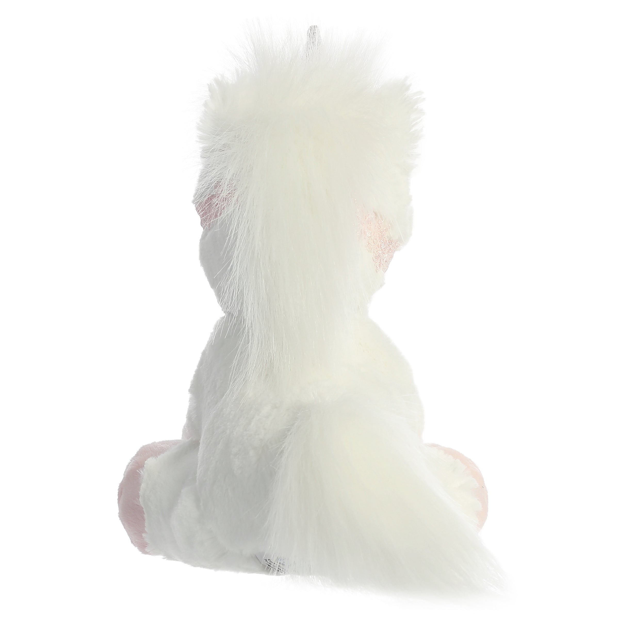 Breyer Bridle Buddies are sweet and cuddly This unicorn has a pearl white coat with rosy pink hooves with a pink shiny horn on its head It also has 'Breyer' embroidered on the bottom of its foot