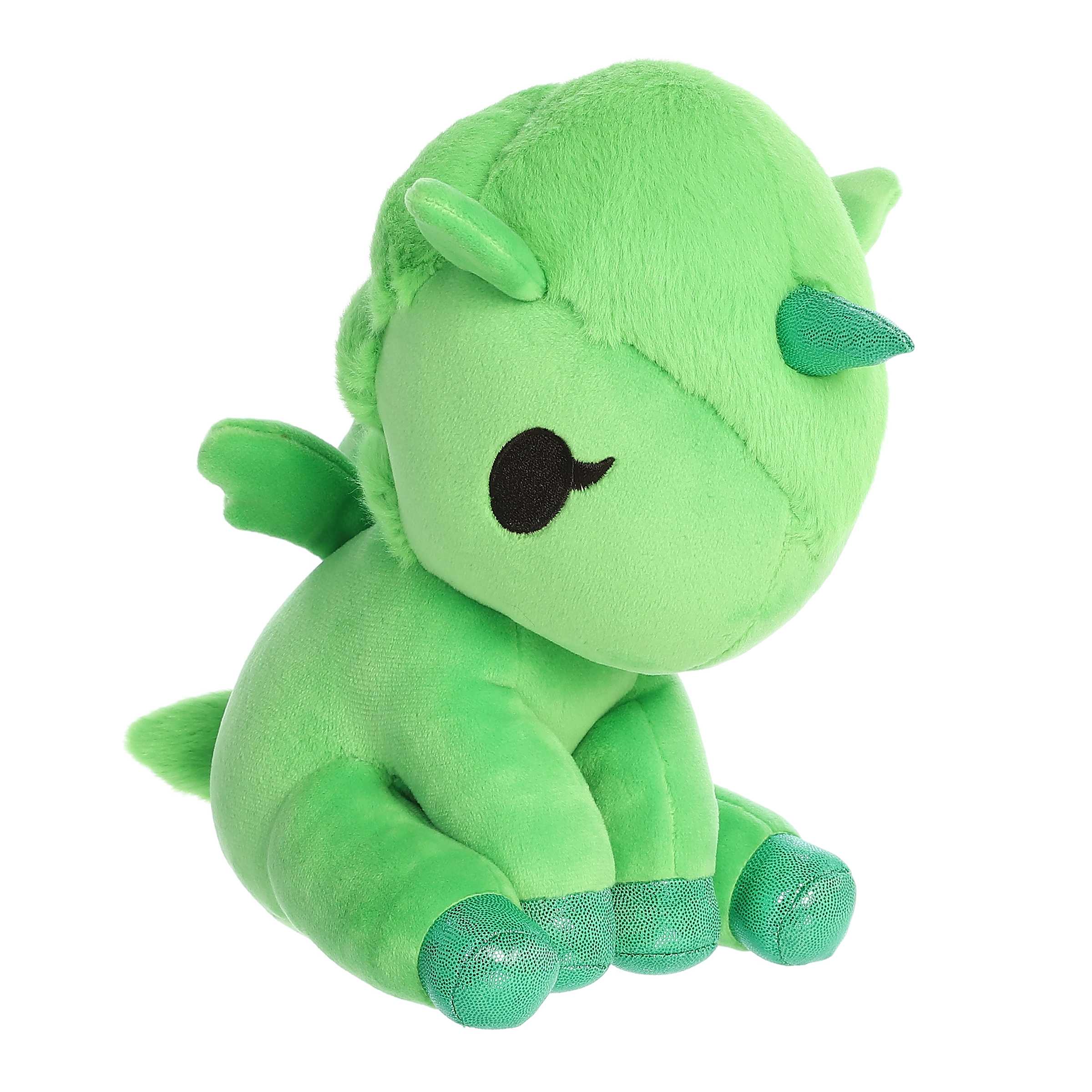 Refresh your collection with the Tokidoki Delicious Unicorno Plush - Salad Green edition by Aurora. This crisp and cheerful plushie brings a healthy twist to the Unicorno world, dressed in vibrant salad-green tones and adorned with a complimentary leafy pattern.