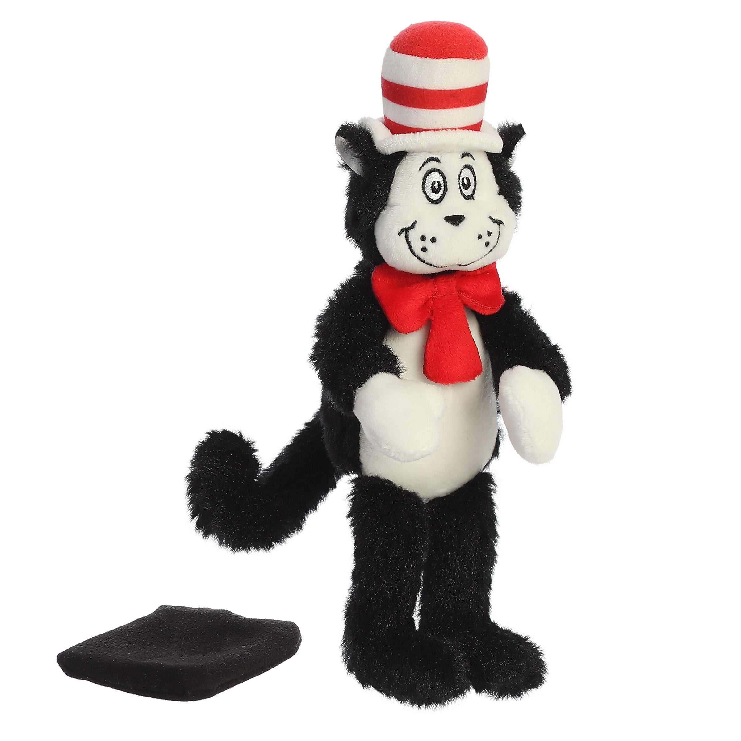 Discover a new way to carry a classic with Cat in the Hat Shoulderkin from Officially Licensed Dr. Seuss, ingeniously designed by Aurora. This innovative plush features a magnetic base that allows it to perch securely on your shoulder, making the mischievous cat an ever-present companion in your daily adventures. Sporting his signature red and white striped hat and bright red bow tie, this plush captures the iconic look and playful spirit of one of Dr. Seuss’s most beloved characters.