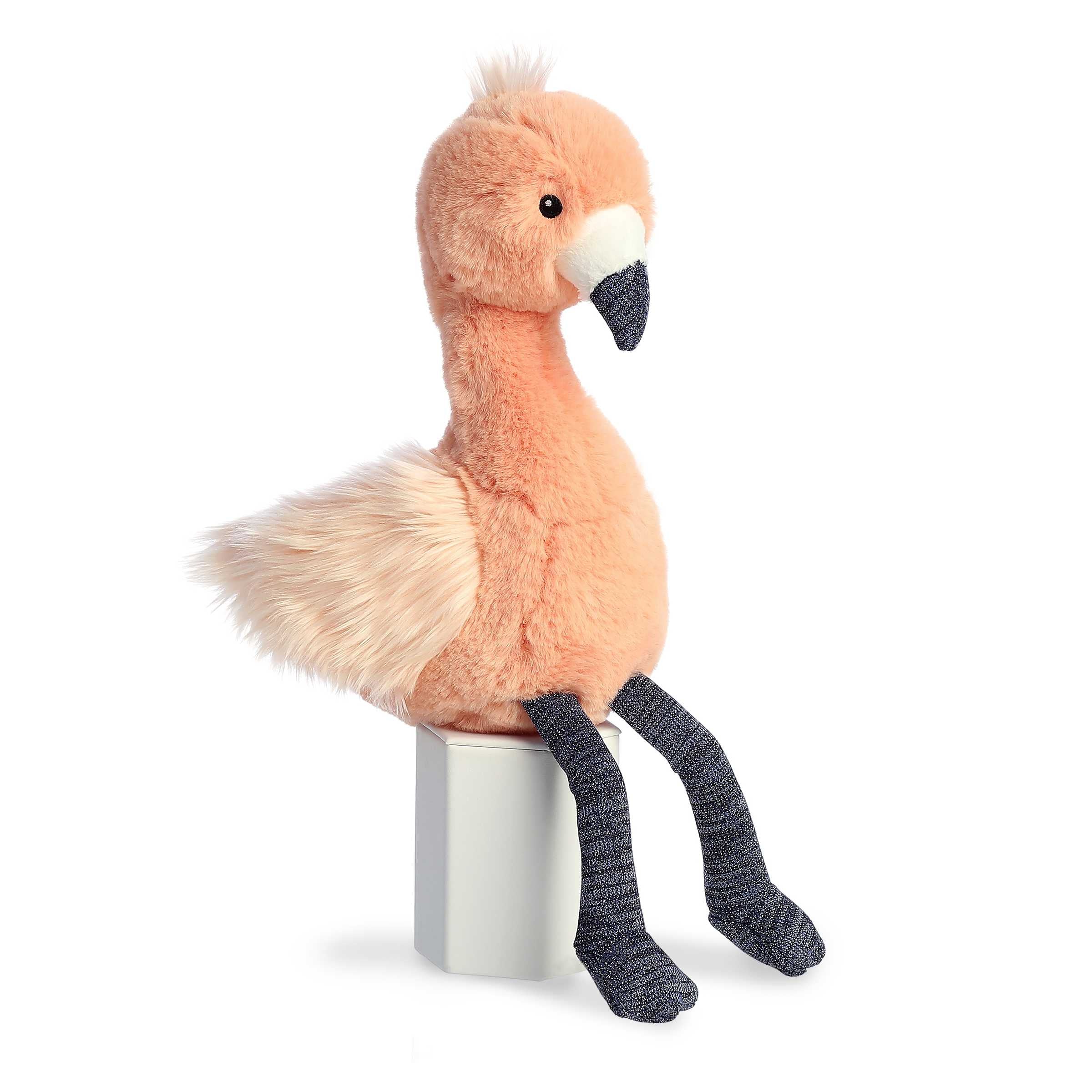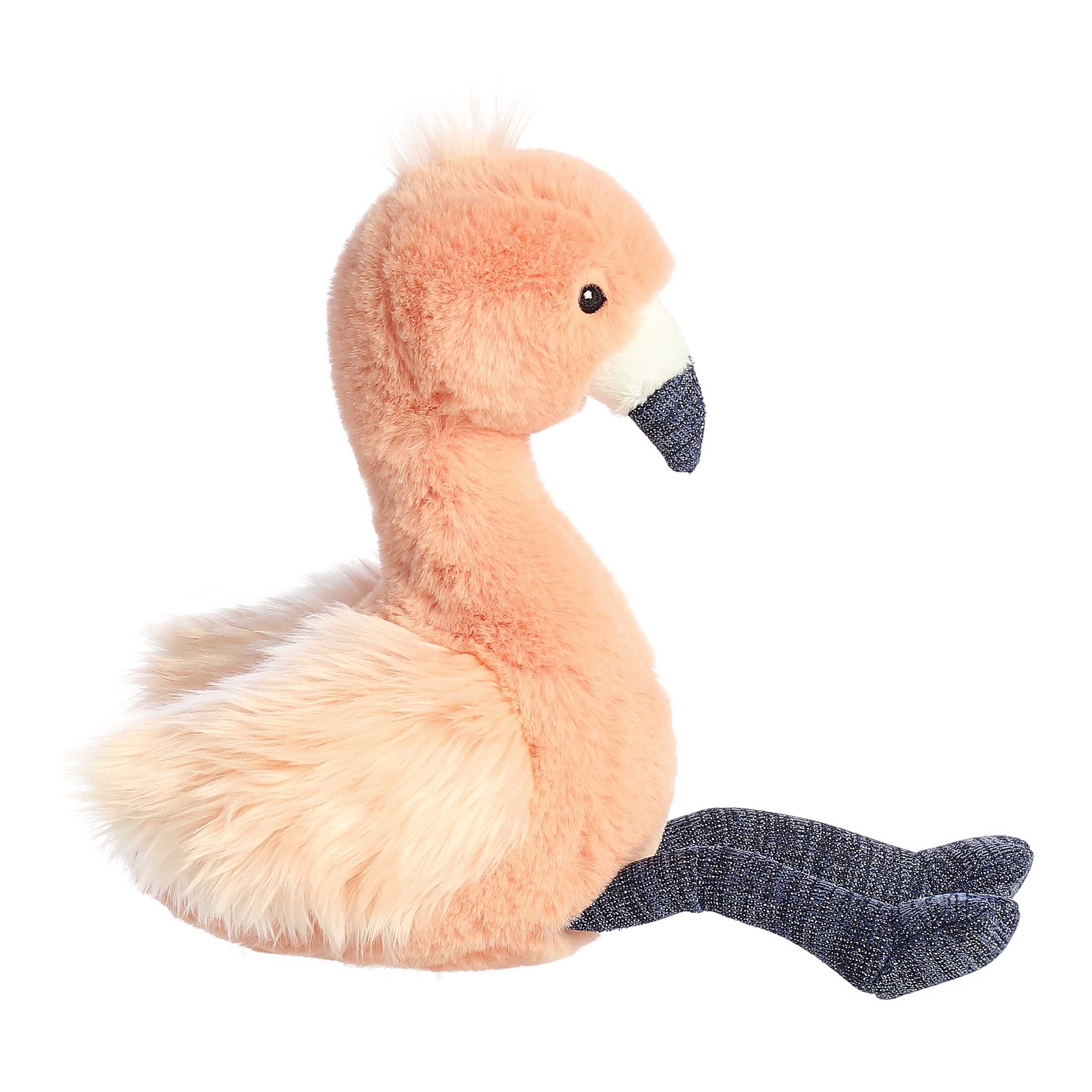 These aquatic friends enjoy splashing around all day but are always ready for play time. Splasheez Flamingo is a beautiful bright coral with indigo and cream accents. This plush features a sparkle knit design on its legs and beak. Its bean- shaped body maintains a seated position for easy storing.