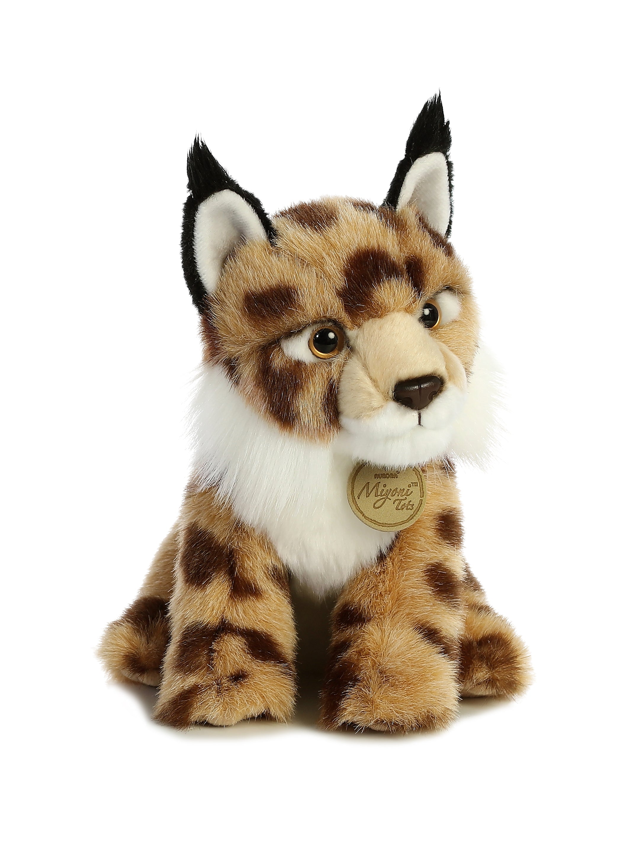 Miyoni features your favorite animals in plush form with a simultaneously realistic and cute design! This Lynx features a feline with a tan body covered in dark brown spots, pointed tufted ears, and white fur puffing underneath its chin. A unique plush animal made from premium materials to last and be cherished for many years.