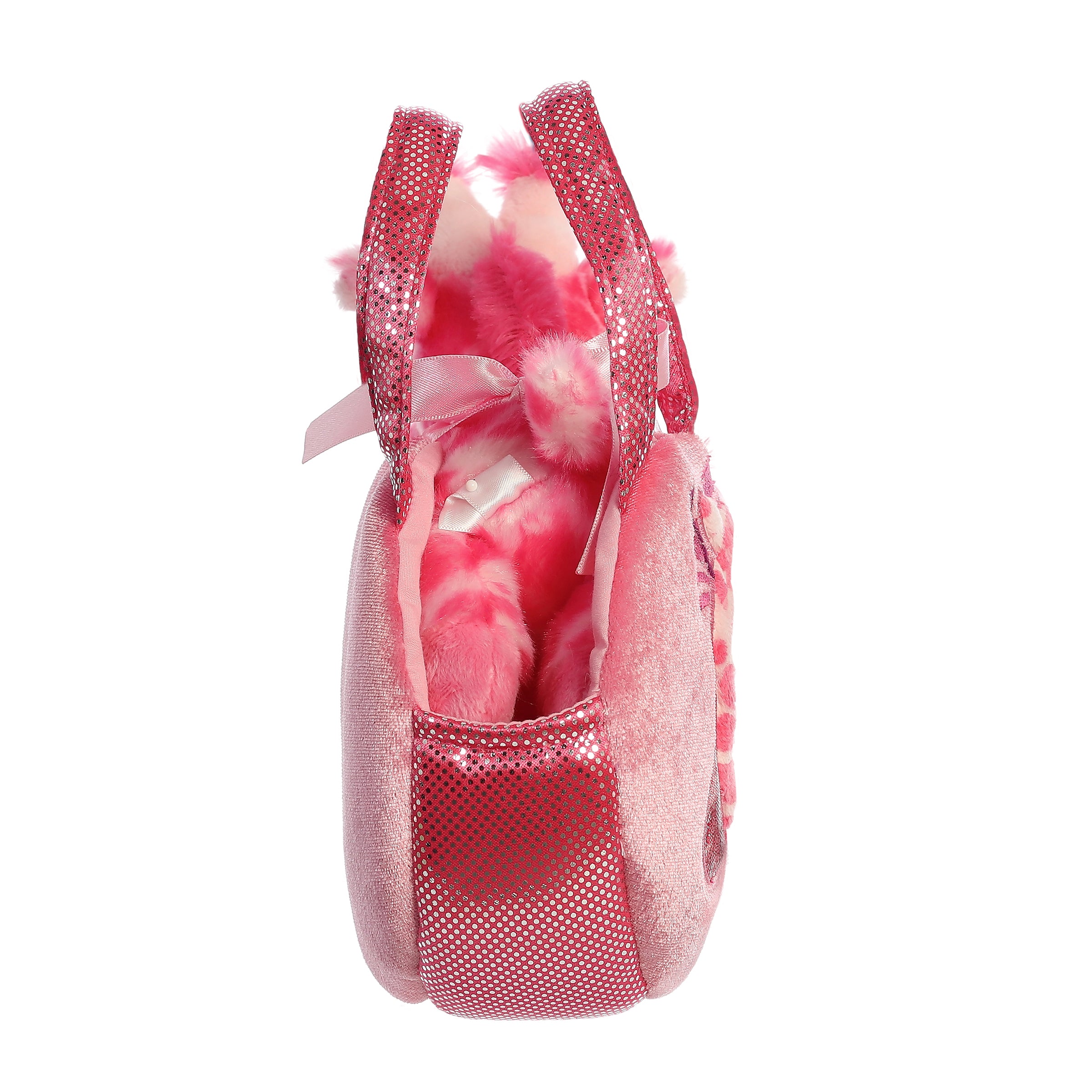 Fancy pals comes with an adorable plush and a bag to carry your new friend wherever you go! This adorable hot pink giraffe is small and compact to perfectly peek its face outside. Jungle Bundles Giraffe bag has a pink giraffe on the front with its mane running down the side of the bag. You're sure to enjoy this stylish plush.