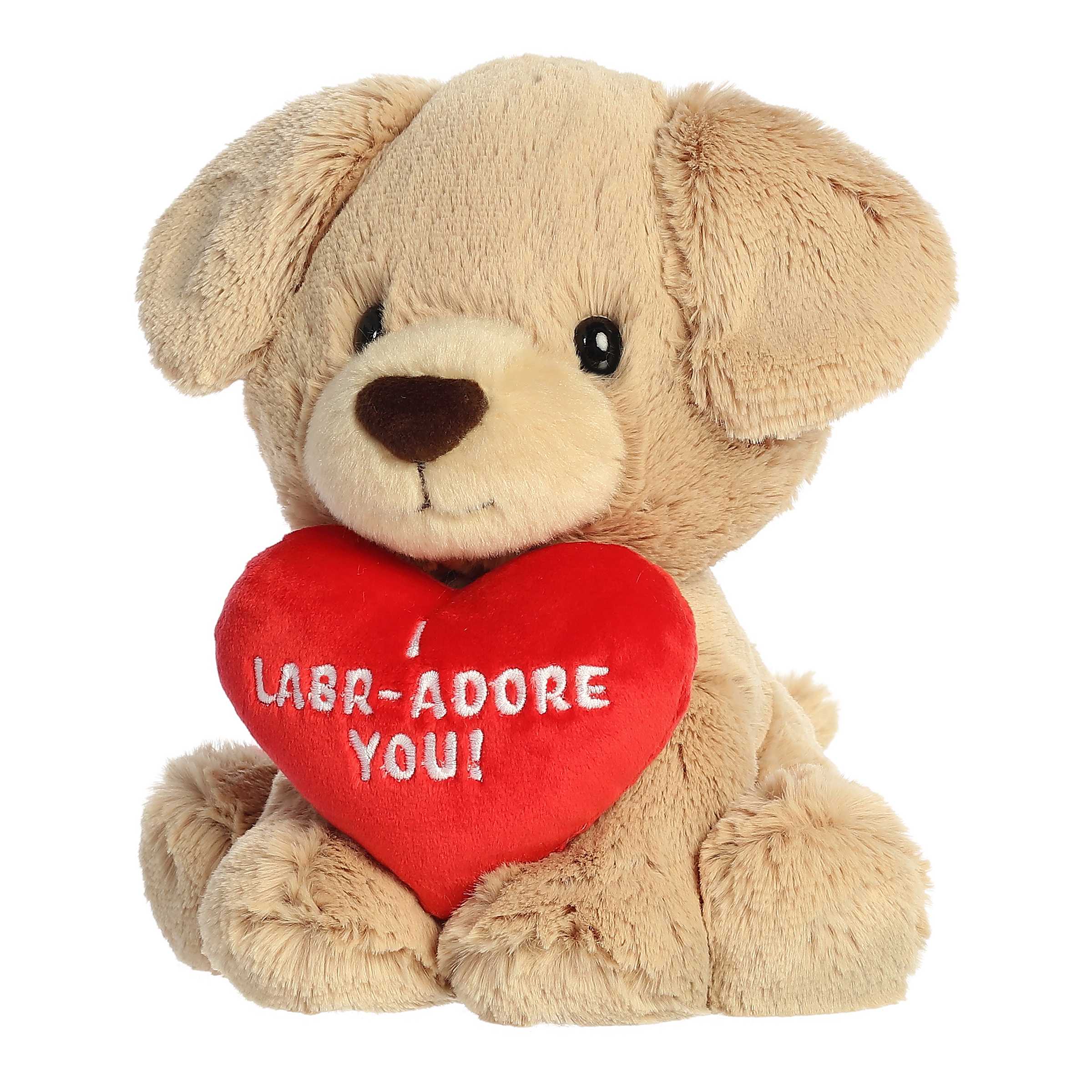 I Labr-Adore You from Aurora's Just Sayin' collection is a delightful way to express your love this Valentine's Day. Featuring a cuddly Labrador plush holding a heart with the pun 'I LABR-ADORE YOU!', this toy combines humor with affection.