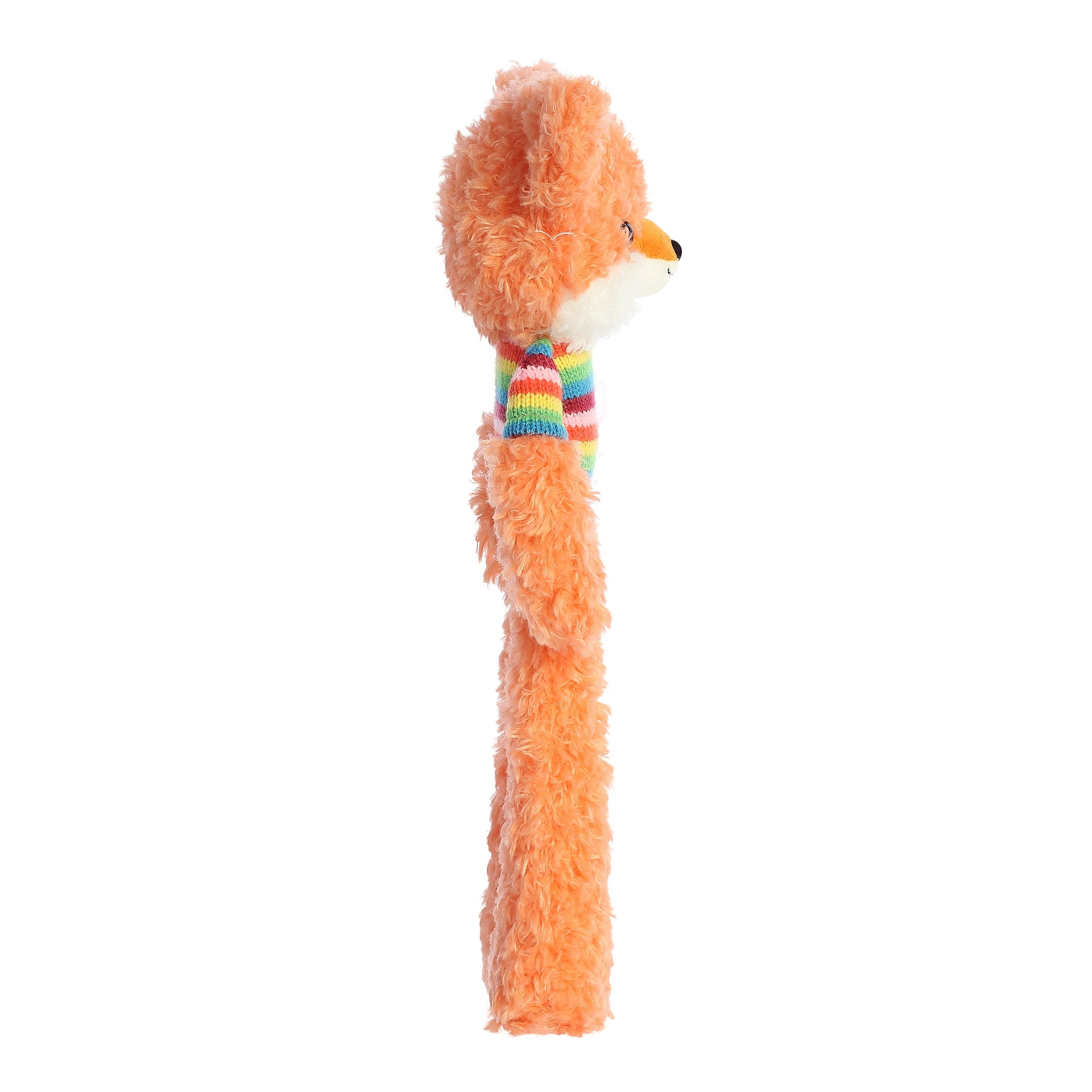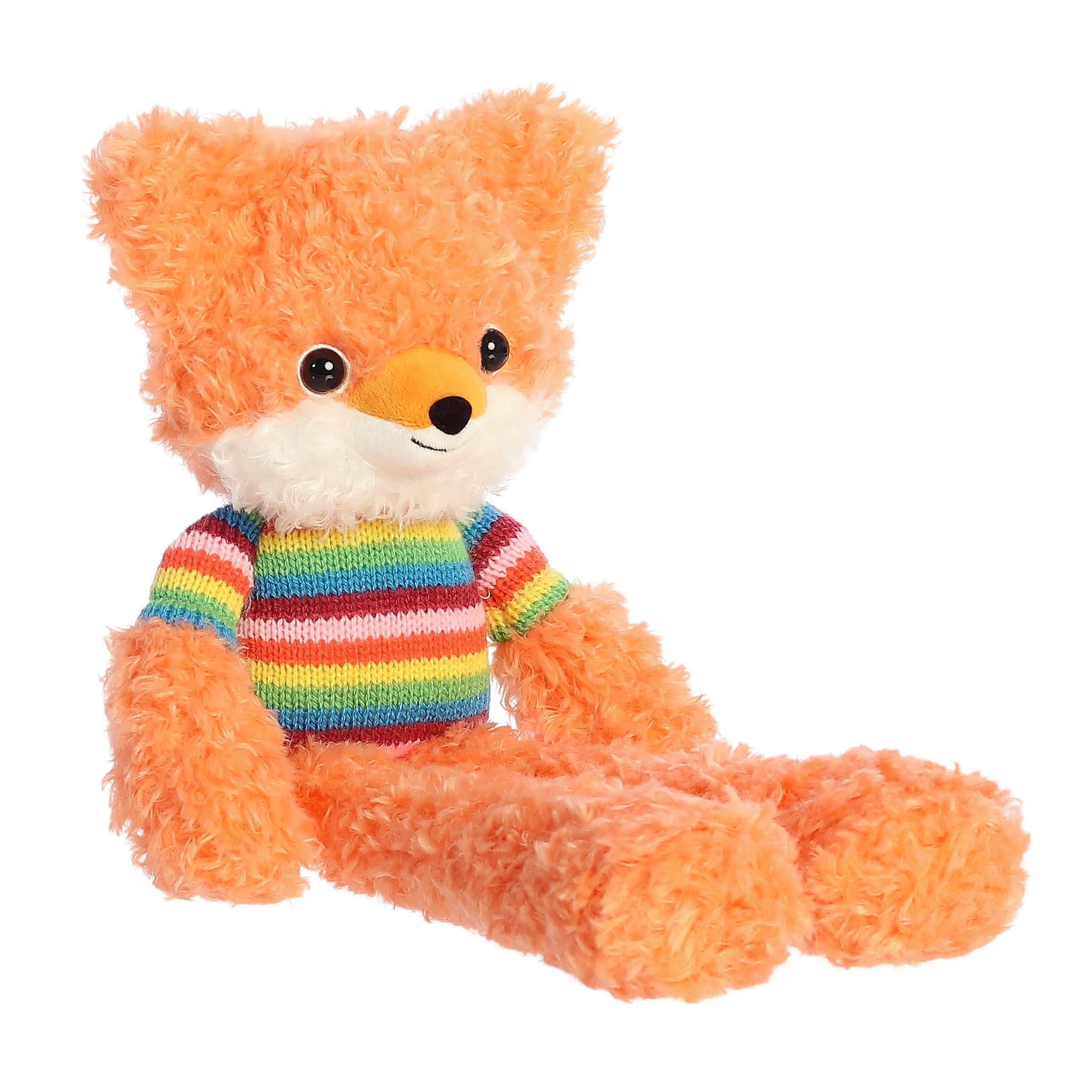 Meet Fox, a radiant orange member of the Dingbits by Aurora collection, designed to infuse any space with a burst of joy and color. This plush toy features a unique elongated body and is dressed in a bright, multi-colored sweater, making it not only a comfortable cuddle partner but also a lively decorative addition. Crafted from soft, plush fabric, Fox is perfect for individuals of all ages, promising endless hugs and a cheerful presence in any plush collection.