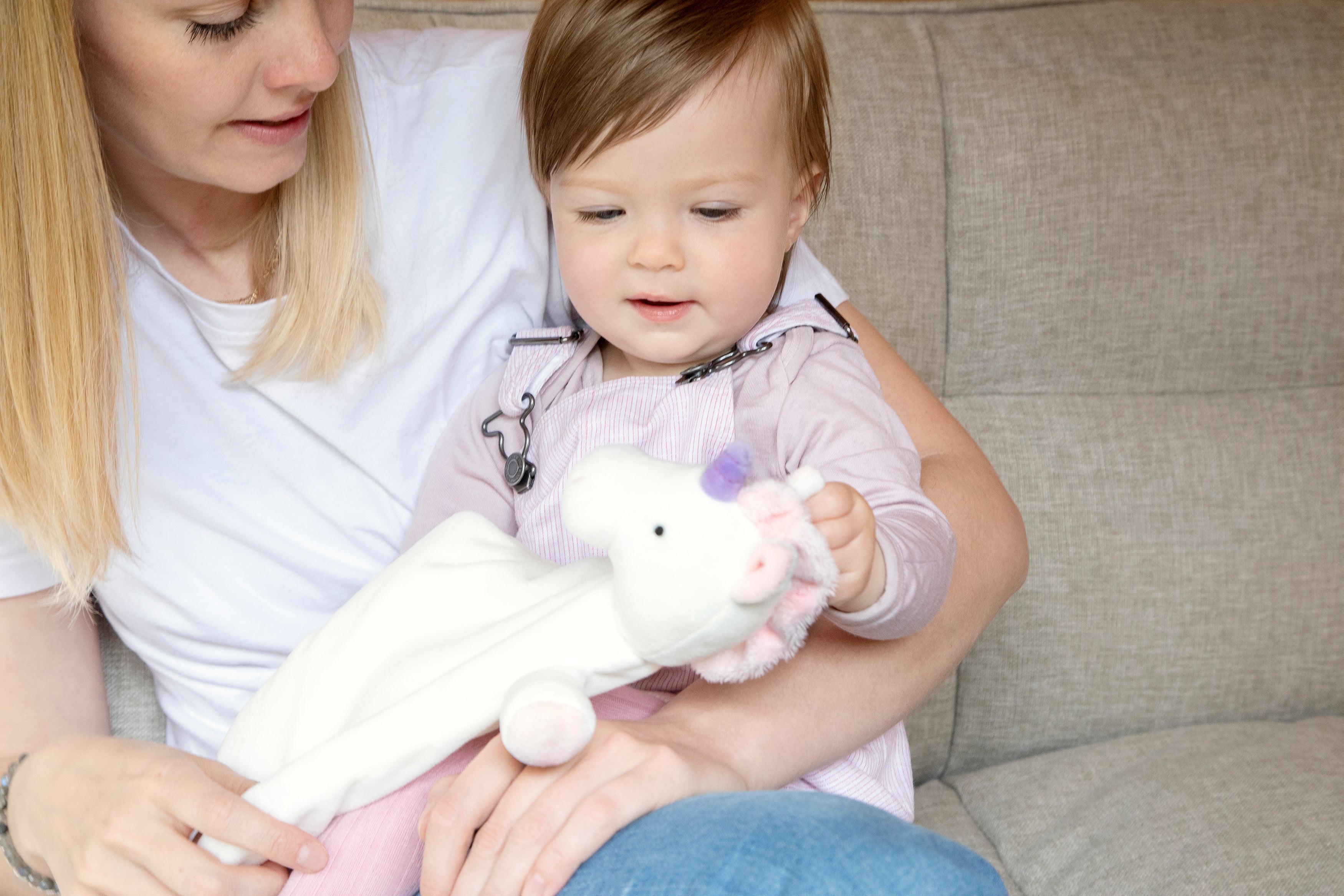 Crafted with ultra-soft plush for the ultimate coziness, the Luna White Unicorn Lovey is the perfect companion that your baby will adore.