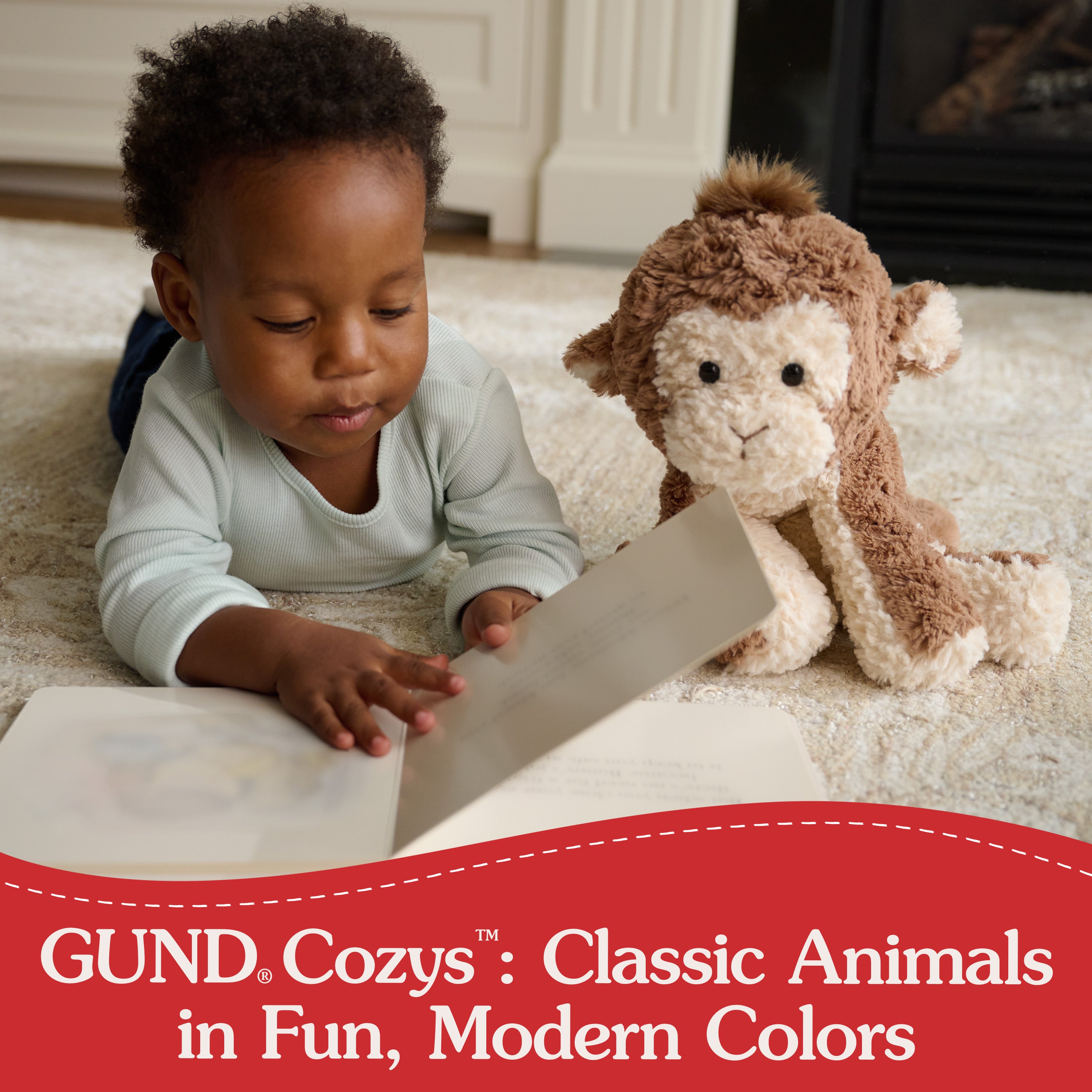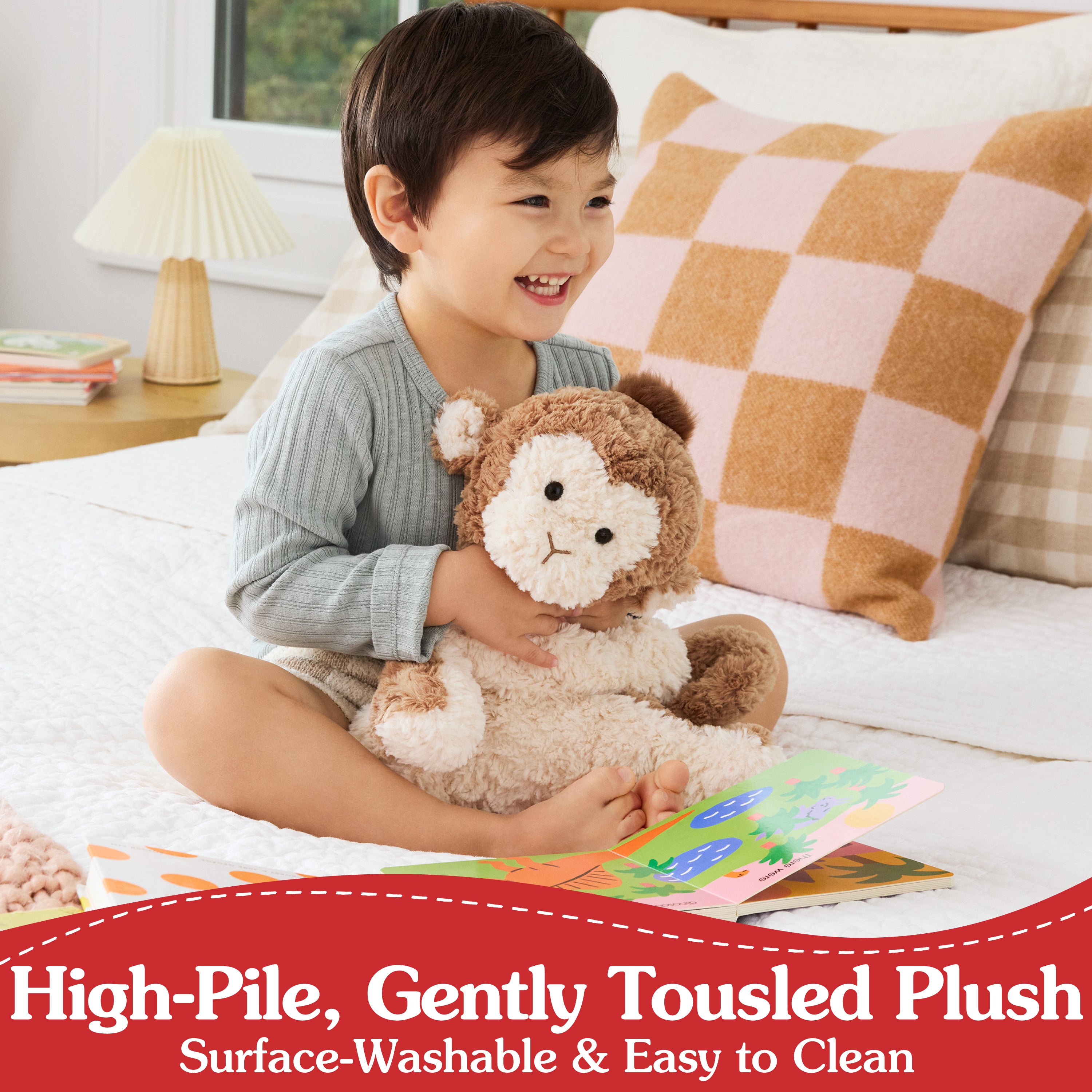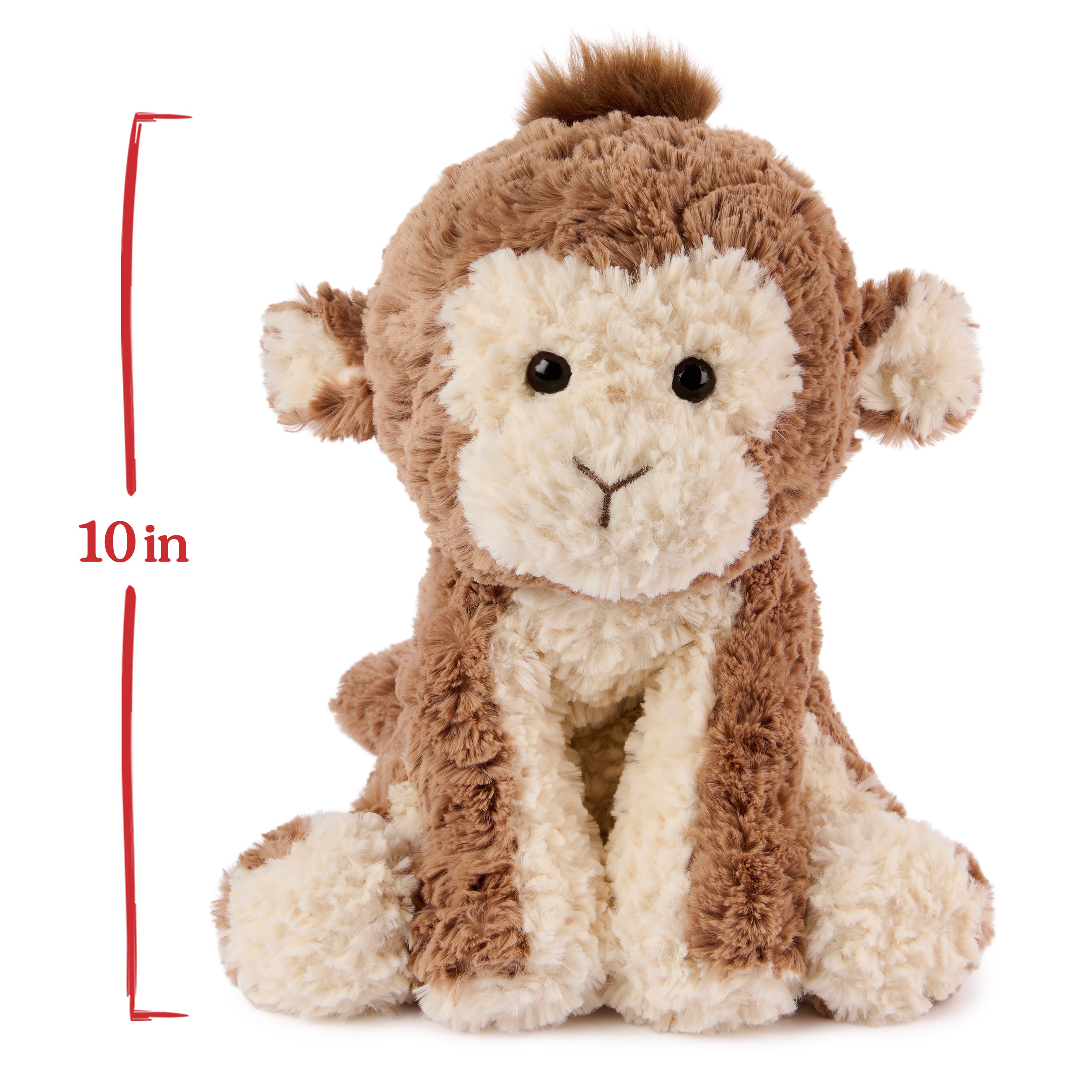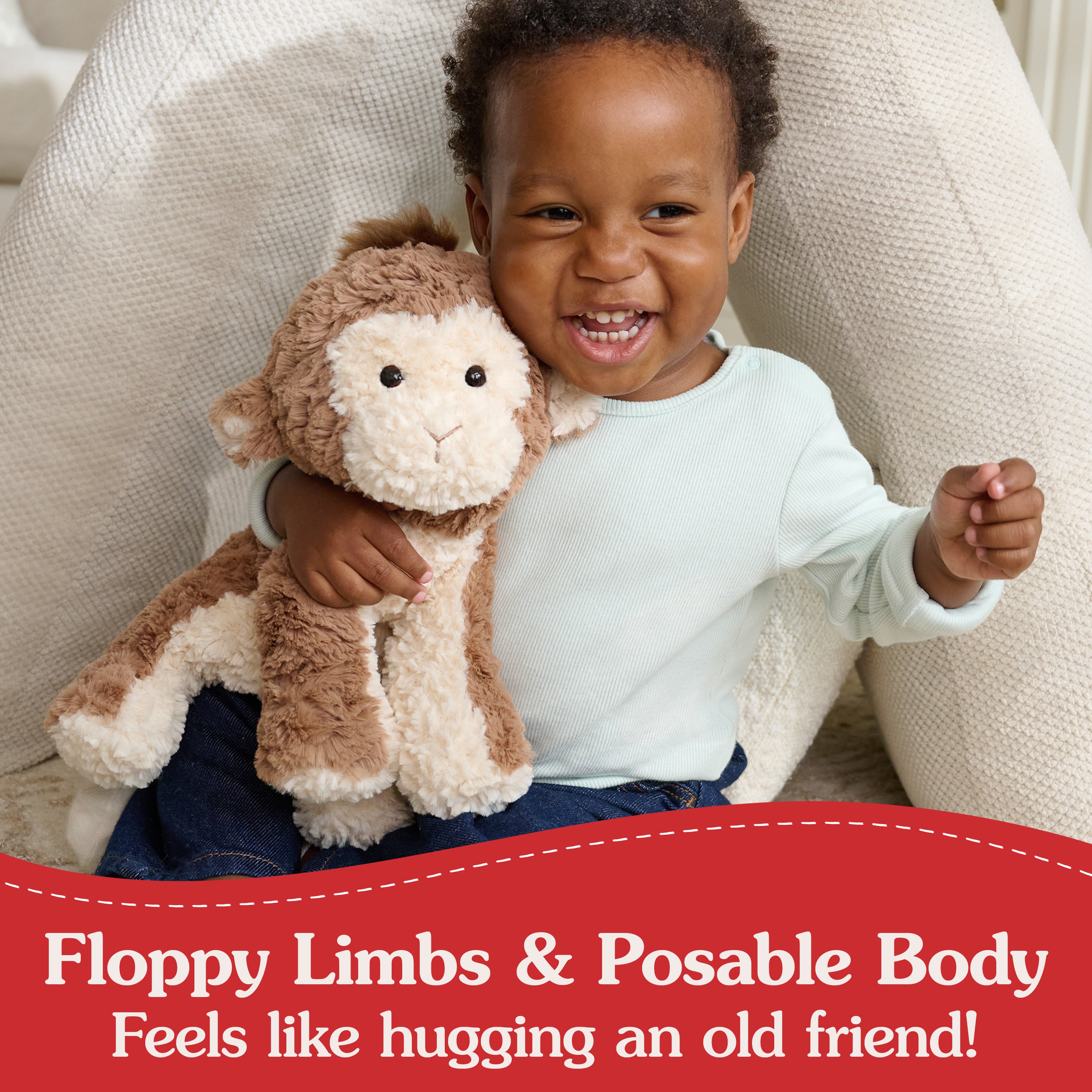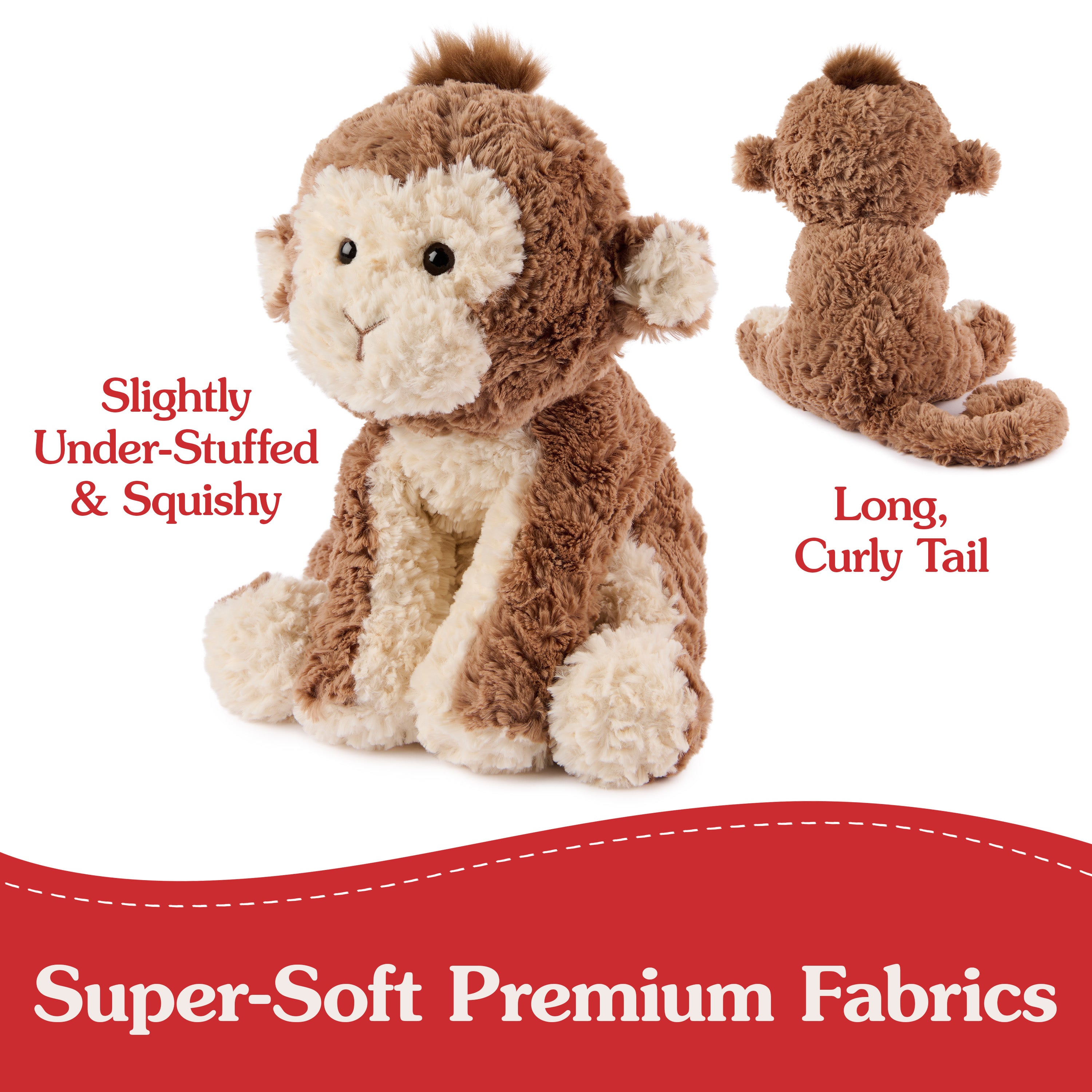 Cozys are cuddly companions made from soft, textured fabrics that feel as familiar as hugging an old friend! At 10 inches long, this monkey is a barrel of fun with soft mocha-hued fur, cream-colored accents and floppy limbs built for hugging. Its long, curly tail and the wispy tuft of plush on top of its head give this adorable plushie its undeniable charm. This not-so-chunky monkey is also understuffed and floppy, making it delightfully poseable and extra-squishy. Its bean-filled paws also help keep it balanced in the classic Cozys pose. Like all animals in the collection, the Cozys monkey’s high-pile fur is specially rippled and textured to make holding on during play easier and make big hugs feel even sweeter. This Cozys monkey is made for snuggle sessions! Appropriate for ages 1 and up. Ships in a protective poly bag. Do not machine-wash.