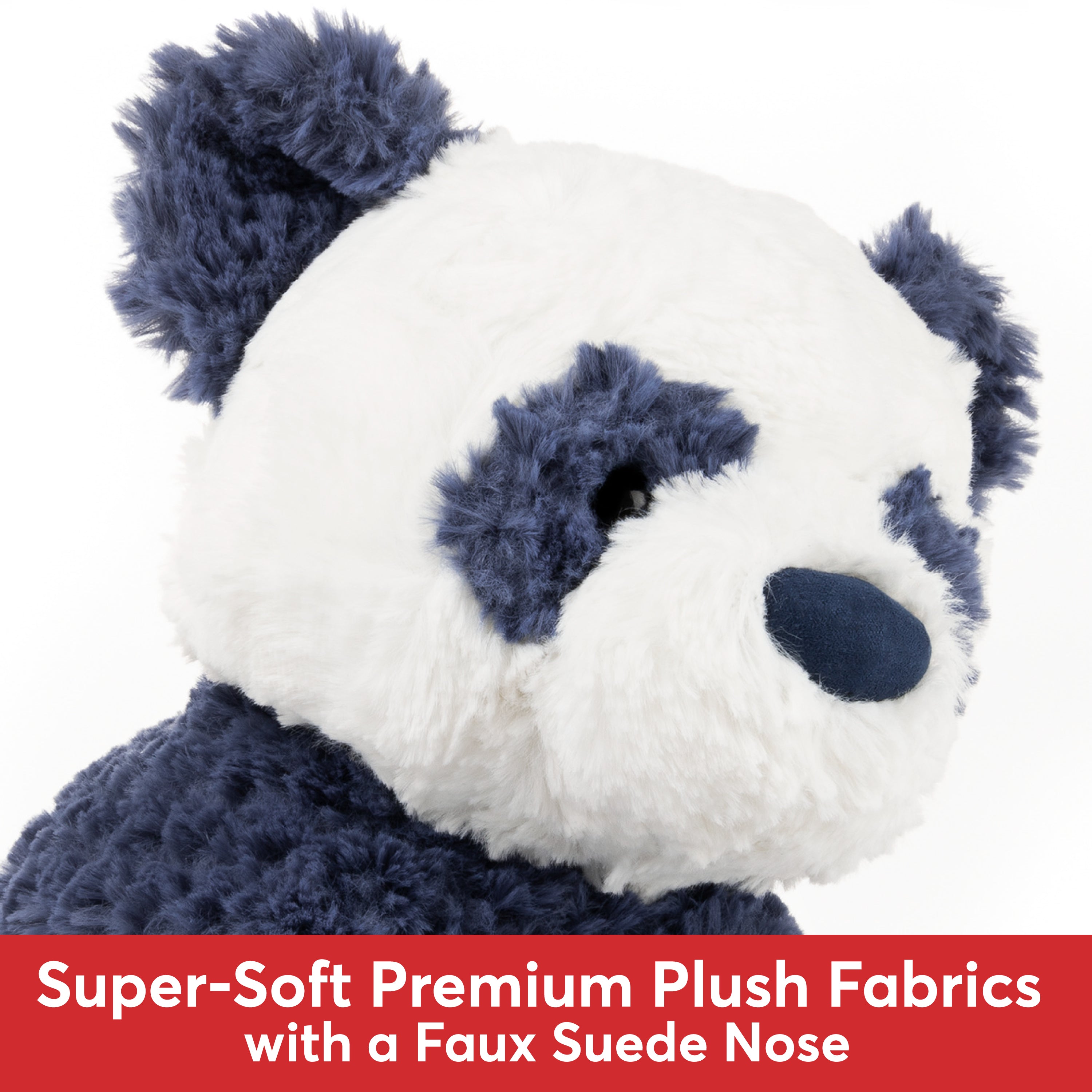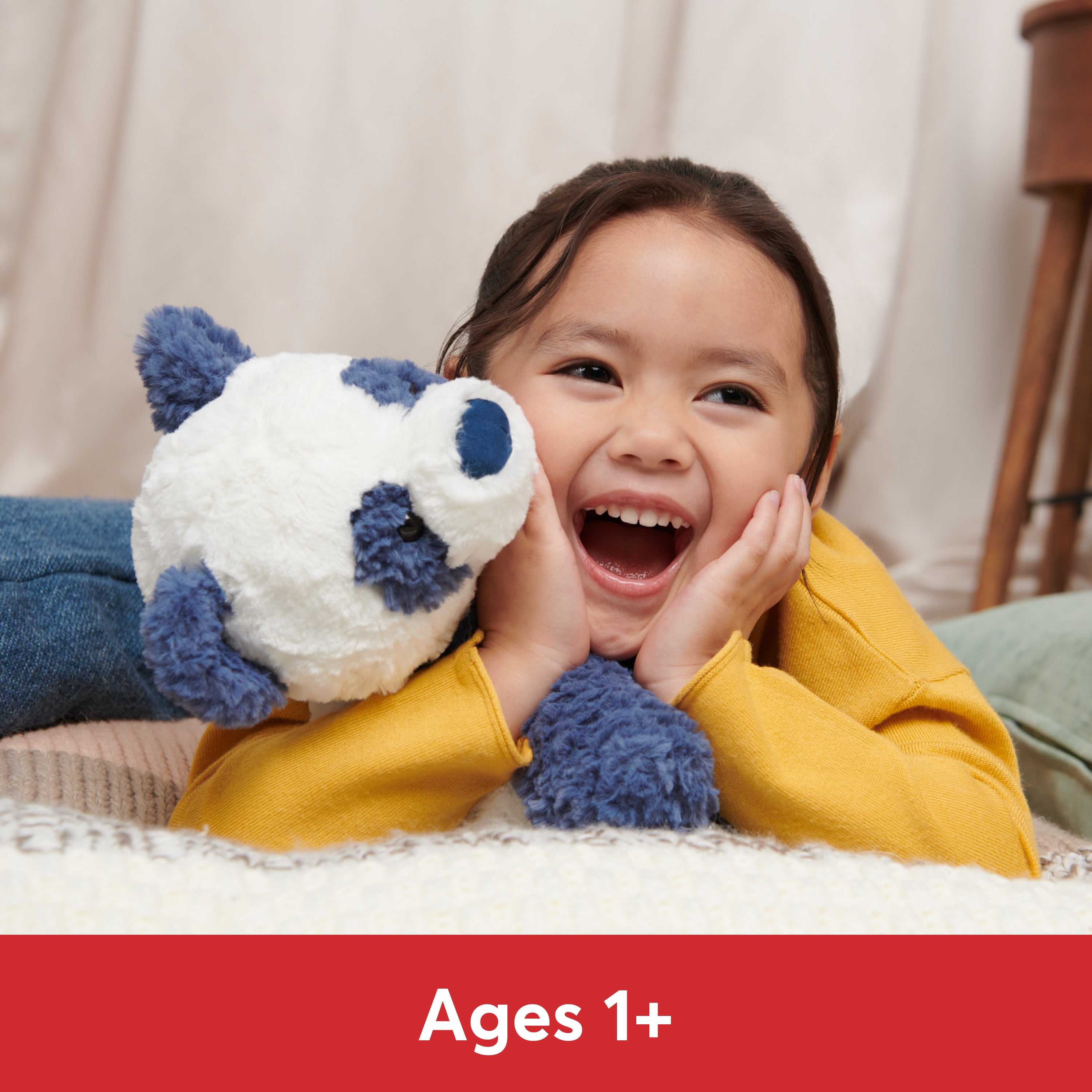 At 10 inches long, this playful panda sports soft white and navy blue fur, floppy limbs built for hugging, and adorable spots over both eyes. Its high-pile fur is specially rippled and textured to make holding on during play easier and make big hugs feel even sweeter. This Cozy panda plush is perfect for snuggle sessions!