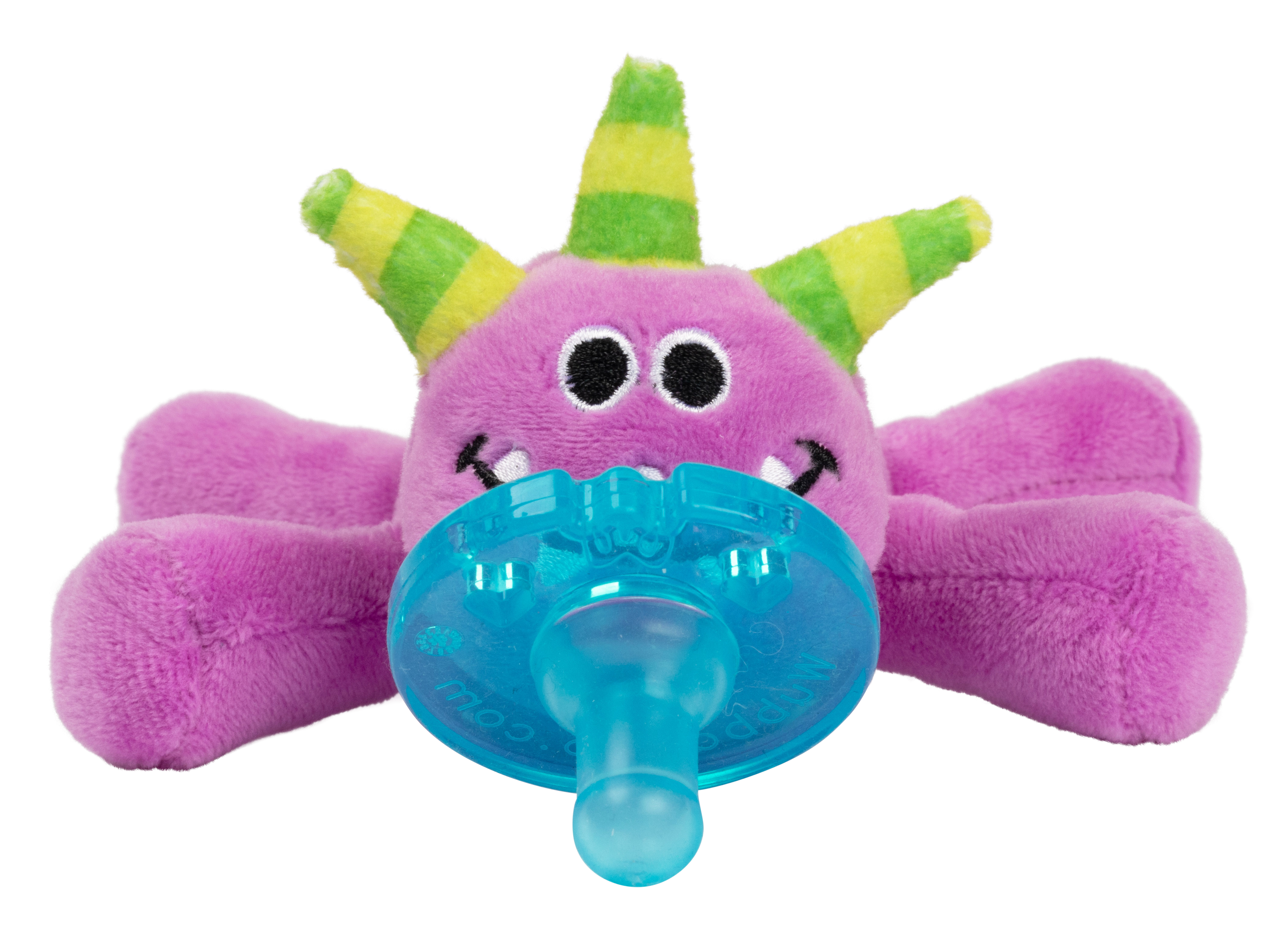 Attached to the plush Purple Monster, whose silly appearance and little legs are perfectly sized for teeny-tiny hands, the unique style of the WubbaNub pacifier allows it to remain close and easily positioned by the baby. Easy to grasp, nearly impossible to lose and may assist baby to self soothe.