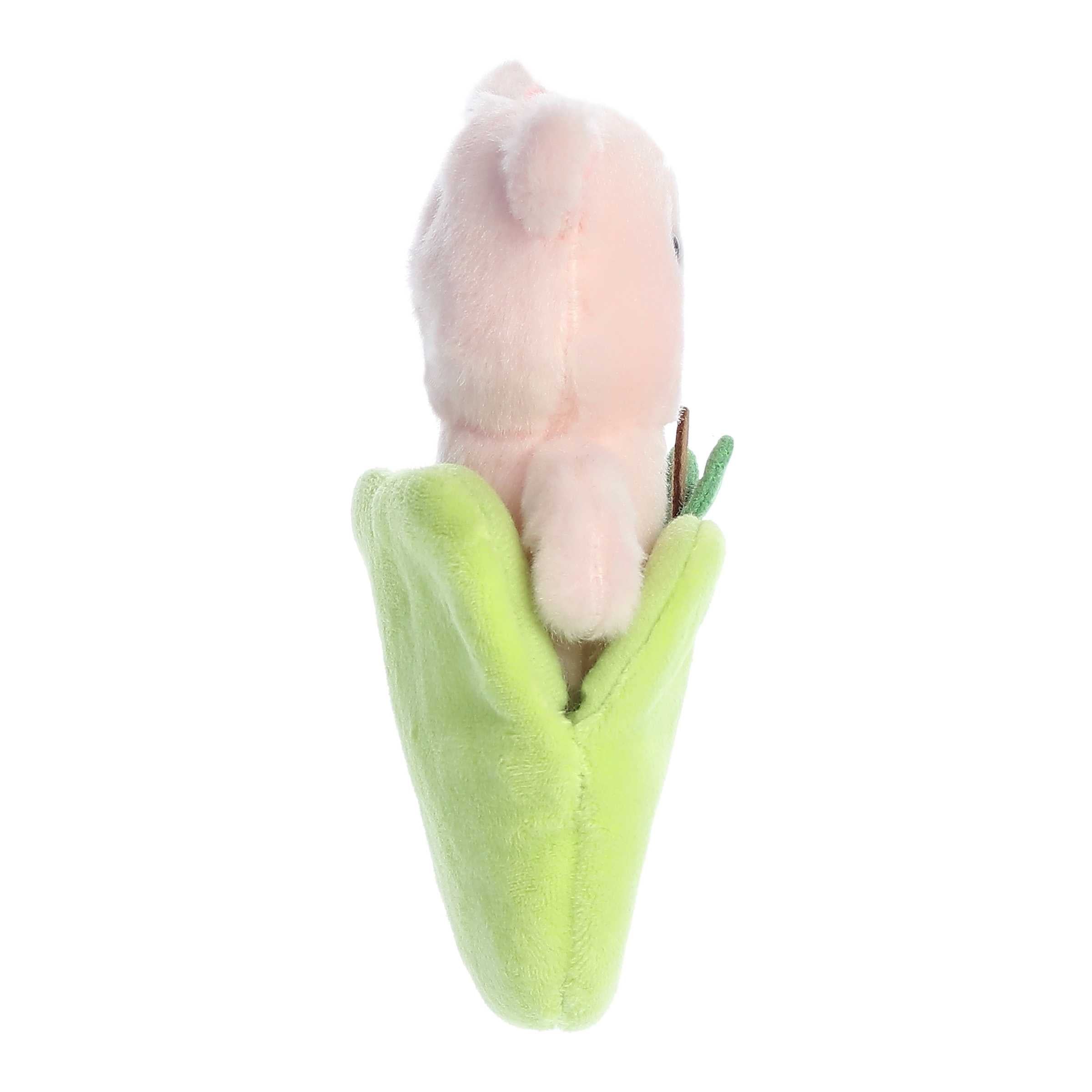 • Designed to be a cute piglet plush resting in the safety of its favorite snack - a green apple