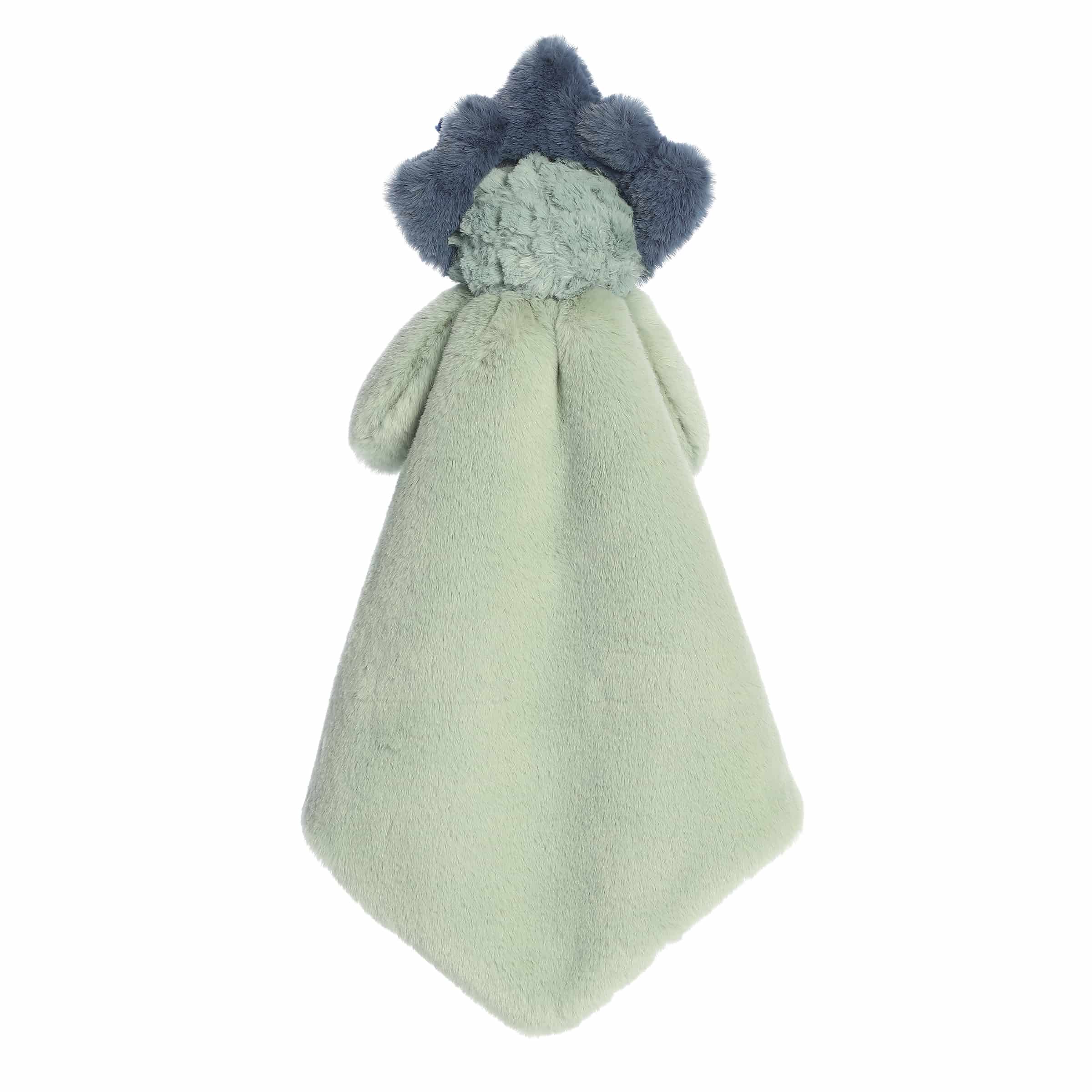 Cuddle with Traci Triceratops Luvster, a plush embodiment of prehistoric playfulness and modern-day comfort from Softiesaurus by ebba. This aqua-blue Triceratops plush blanket is the perfect blend of historical intrigue and tactile delight, designed specifically for the littlest adventurers.